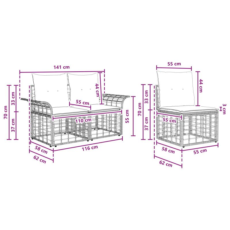 Нашият секционен диван за открито съчетава рустикалния дизайн с модерна функционалност, предоставяйки супер удобно място за почивка на терасата. Изработен със стоманена рамка, боядисана с прах и покрита с полиратан, този комплект осигурява дълготрайност и стил за твоя открито събиране. Прахово боядисана стоманена рамка : Здравата стоманена рамка с прахово покритие на нашия открит секционен диван е устойчива на атмосферни условия, предлагаща стабилност на терасата ти и правейки я дълготрайна. Естетика от полиратан : Диванът с красив полиратан предлага естествен и стилен вид. Тази част му придава рустикален чар и остава лесна за поддръжка, устойчива на UV, като така осигурява дълготрайна привлекателност. Възглавници, устойчиви на време : Почувствай се удобно с възглавниците, направени от водоустойчив материал. Закопчанията с клапи осигуряват безопасност, без да се притесняваш, а поддръжката е лесна, защото калъфките се пране. Модулна конфигурация : Диван комплектът е модулен и можеш да го аранжираш според пространството или настроението на събиранията. Гъвкавият дизайн предлага безброй опции, независимо от типа на разположението на терасата. Лесна поддръжка : Проектиран за външна употреба, този диван е супер лесен за поддръжка. Просто избърсвай с влажна кърпа и ползвай покритие за мебели, когато не го използваш, за да запазиш вида му през цялата година.