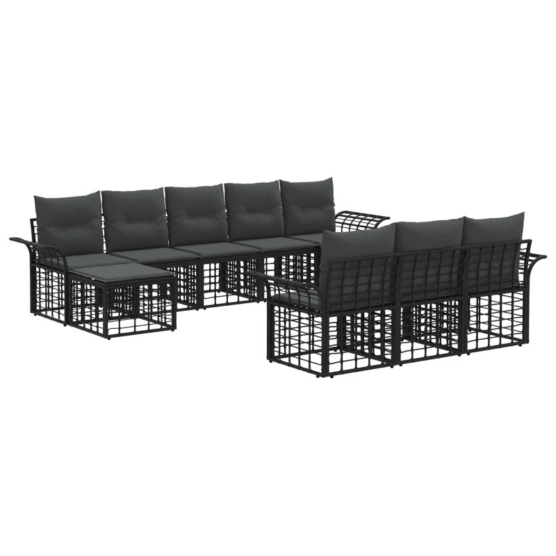 Комплект дивани за открито 10 pcs Черно и тъмно сиво Полиестер
