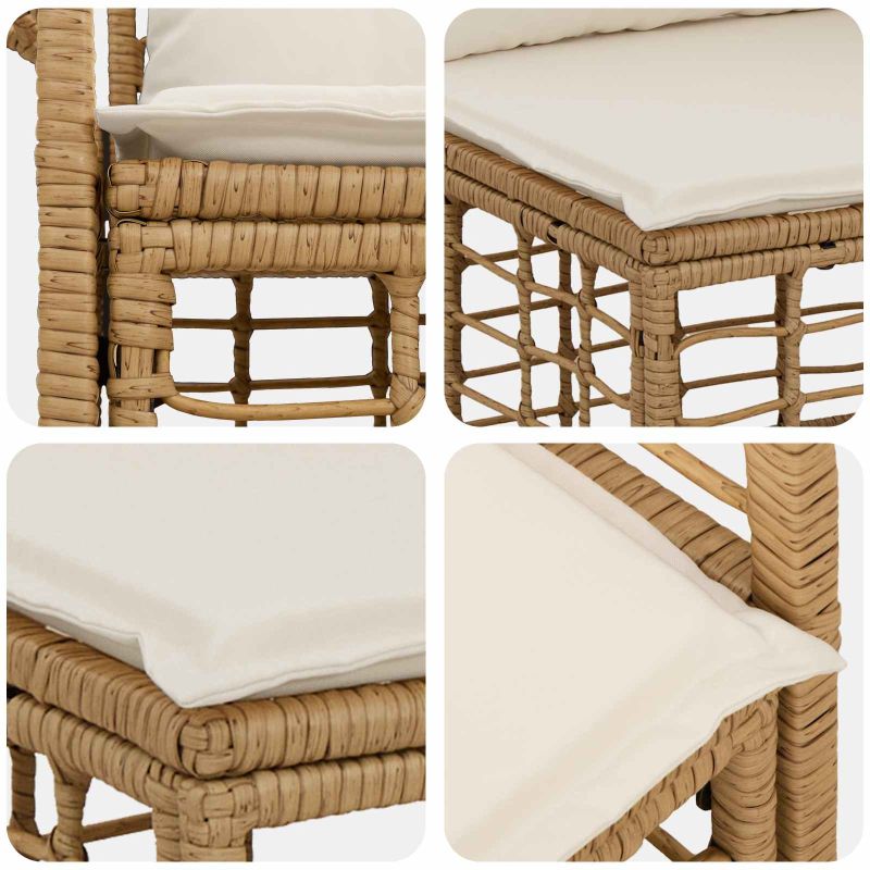 Нашият градински секционен диван е проектиран да направи твоето градина или пате модерен оазис. С изискана полиратанова конструкция и здрава стоманена рамка, този комплект е изключителен по стил и функция. С устойчиви на времето качества, можеш да се наслаждаваш на комфорт и дълготрайност през всички сезони, перфектен за релакс и социални събирания. Модерен полиратанов дизайн : Нашият градински секционен диван предлага стилен полиратанов вид, който идеално се вписва в всяко открито пространство. Материалът е плетен естествено и е издръжлив на ежедневно ползване. Устойчива конструкция : Целият комплект е направен да издържа на открито. Устойчивост на времето му гарантира дълготрайност, независимо от климата, така че е идеален за употреба през цялата година. Комфортни възглавници : Релаксирай удобно на тези пухкави, устойчиви на времето възглавници. Те предлагат мекота и поддръжка, позволявайки ти да се отпуснеш в стил. Здрава стоманена основа : Сигурната стоманена рамка осигурява стабилност и подкрепа. Тази конструкция запазва формата на комплекта, докато предоставя удобно място за сядане за семейството и приятелите. Лесна поддръжка : Поддържането на нашия секционен диван е лесно. Просто го избърсвай с влажна кърпа и е готов! Сглобяването изисква два мацки и отвертка.