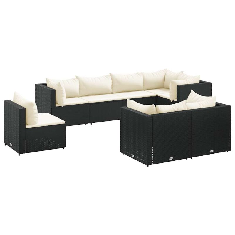 Градински лаундж комплект с възглавници 8 части черен полиратан