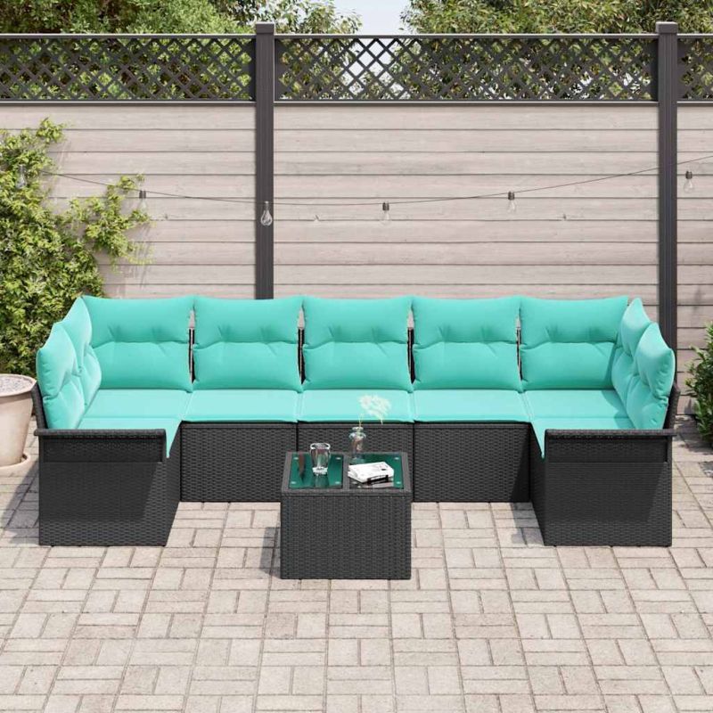 Градински Софа Комплект 8 pcs Черно Полиратан