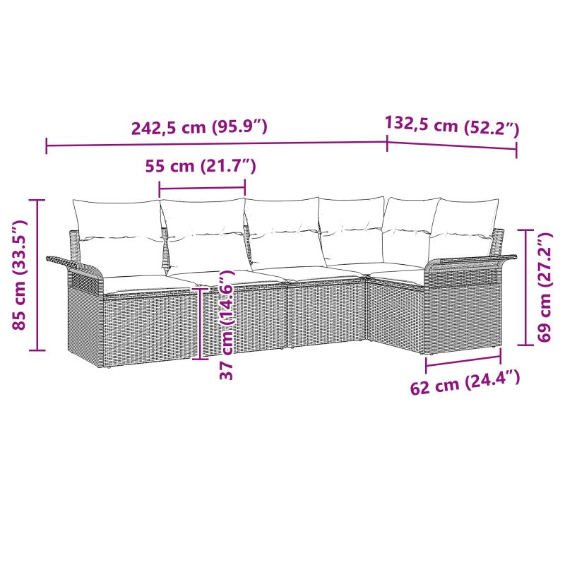 Градински Софа Комплект с възглавница 5 pcs Черно полиратан