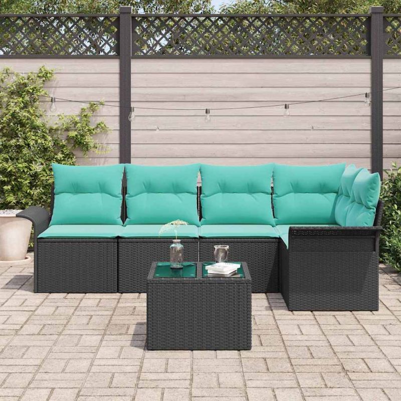 Градински Софа Комплект с възглавница 6 pcs Черно полиратан