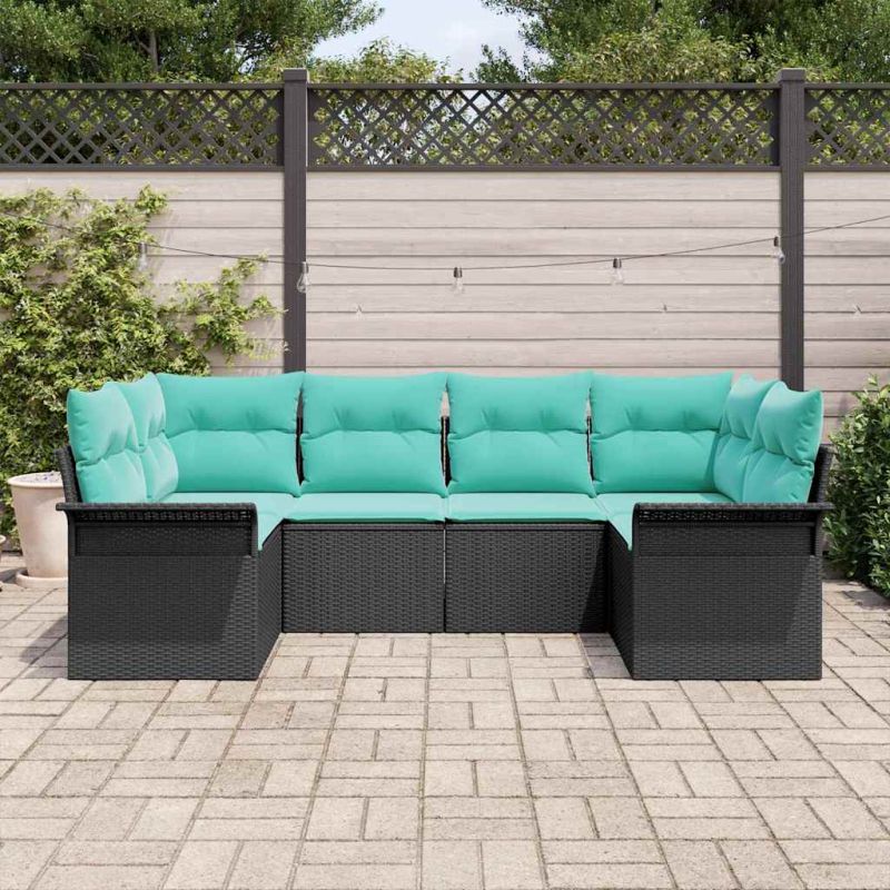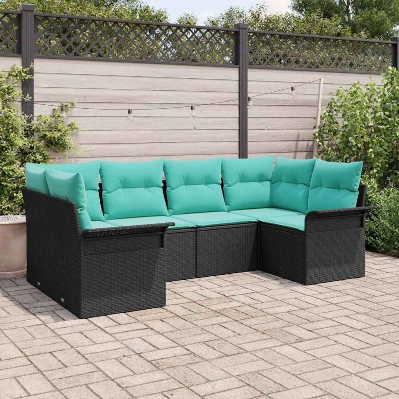 Градински Софа Комплект с възглавница 6 pcs Черно Полиратан