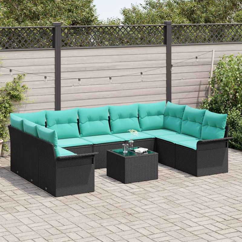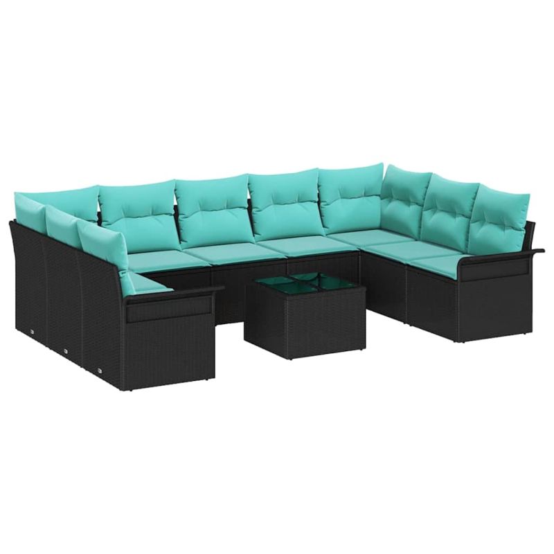 Градински Софа Комплект с възглавница 10 pcs Черно полиратан