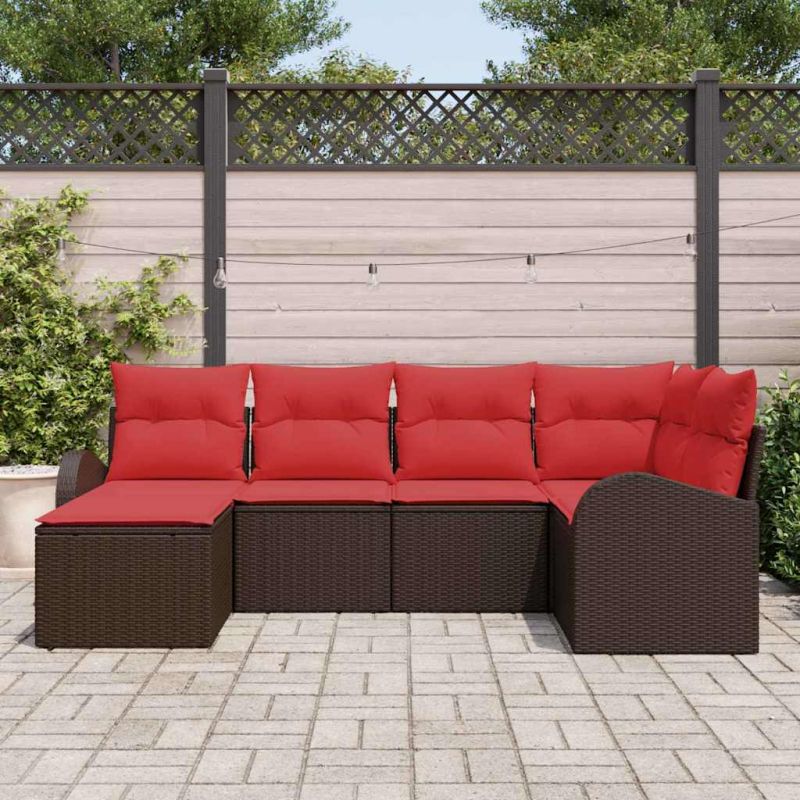 Градински Софа Комплект 6 pcs Кафяво Полипропилен Ратан