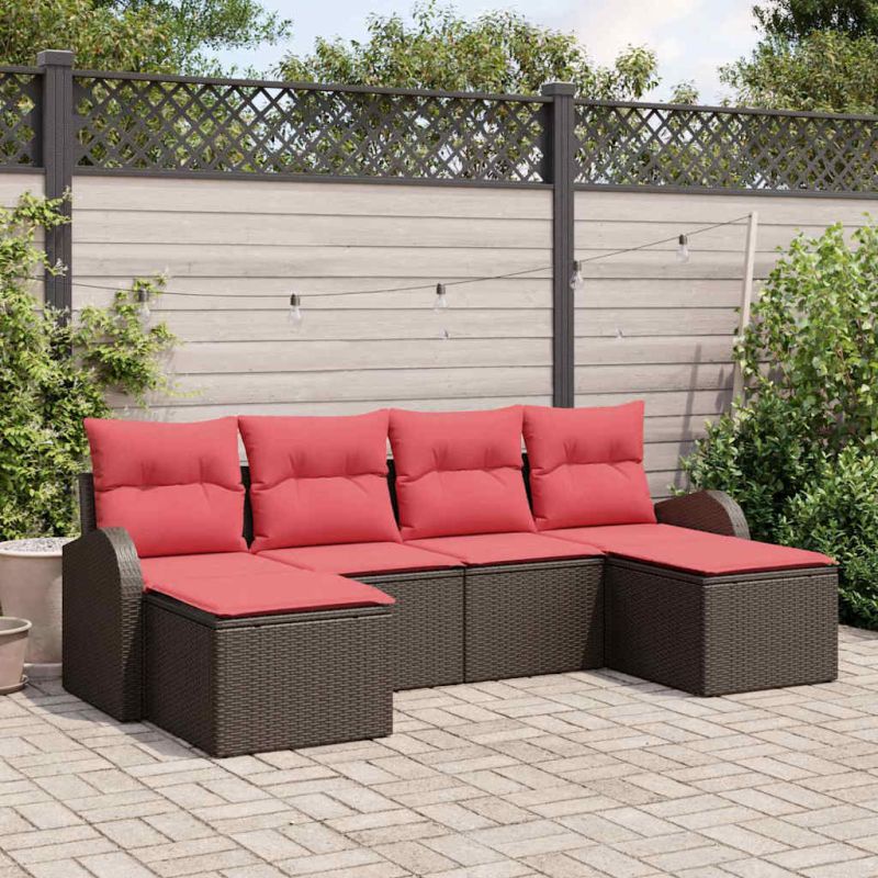 Градински Софа Комплект 6 pcs Кафяво Полипропилен Ратан