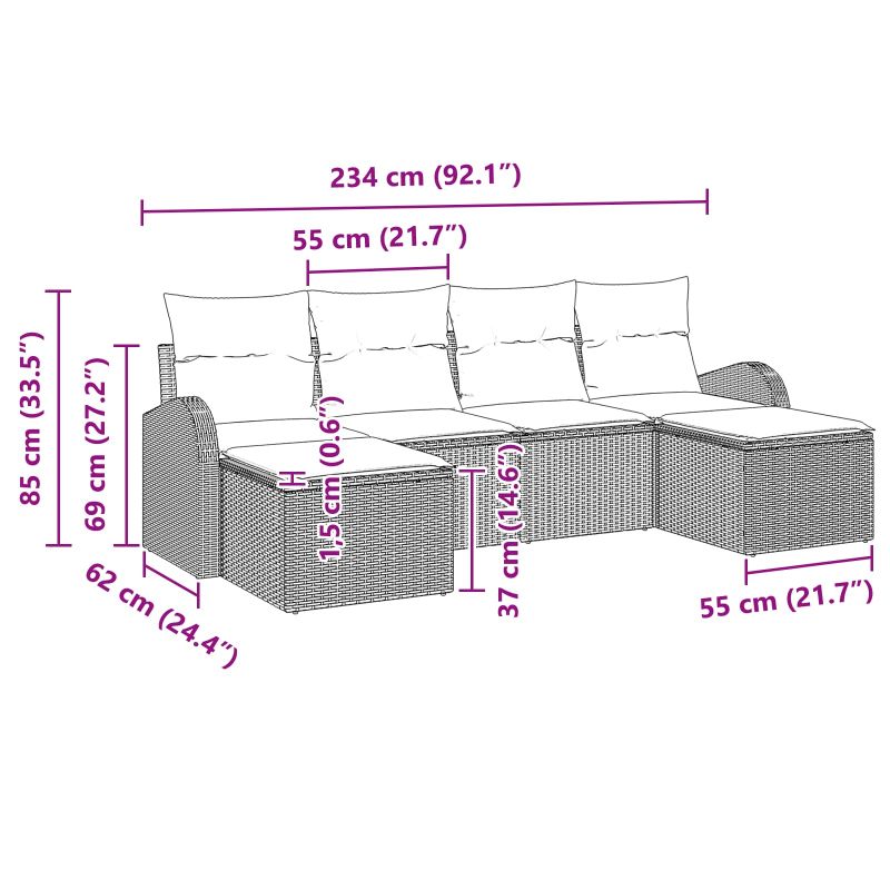 • 2 x Диван с ръкави: 55 ×62 ×69 см (Д×Ш×В)
