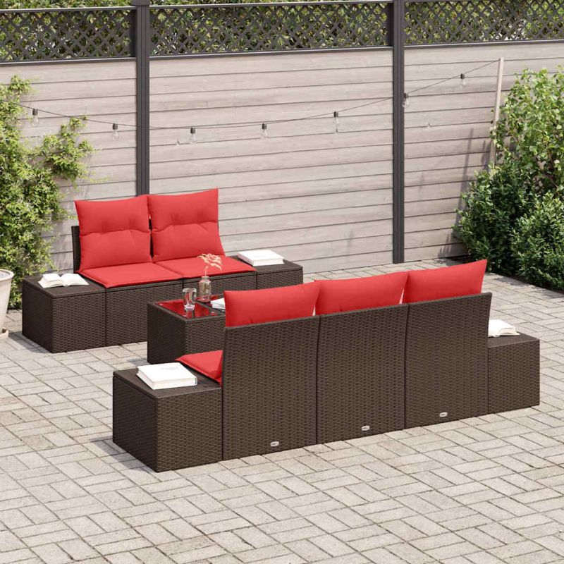 Градински Софа Комплект с възглавница 6 pcs Кафяво полиратан