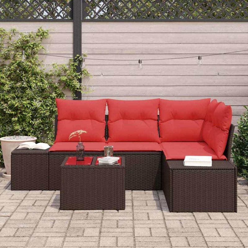 Градински Софа Комплект с възглавница 5 pcs Кафяво полиратан