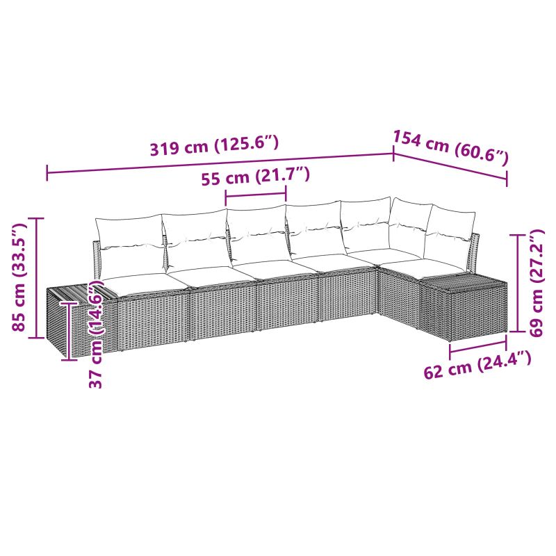 Градински Софа Комплект с възглавница 6 pcs Кафяво полиратан