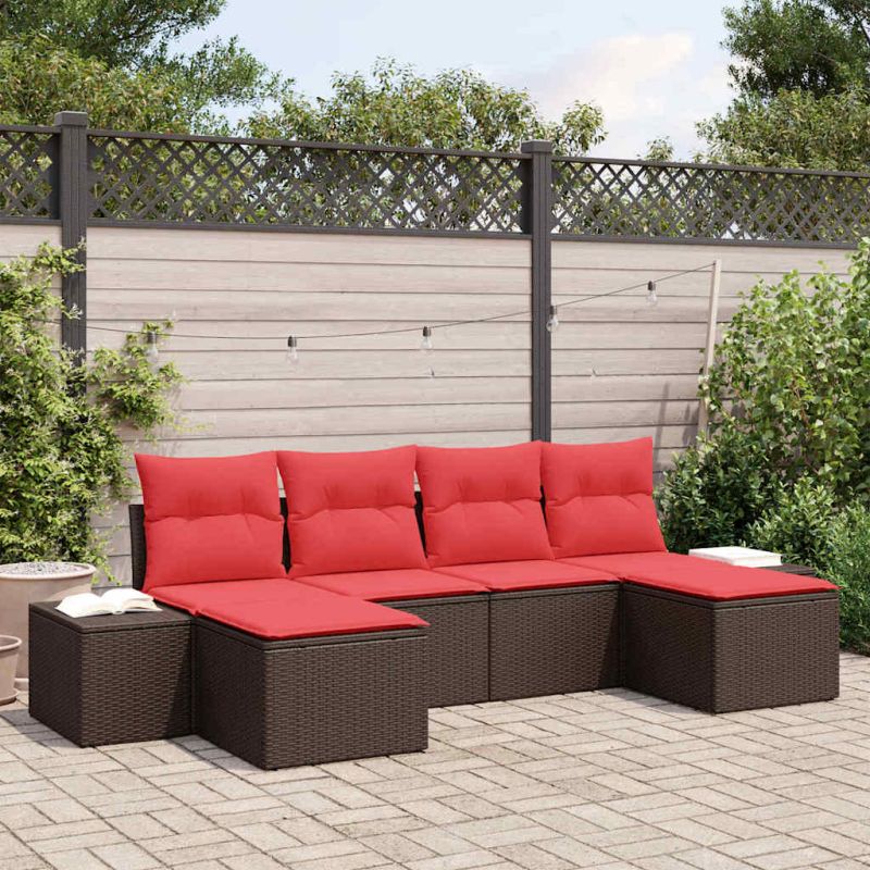 Градински Софа Комплект с възглавница 6 pcs Кафяво полиратан