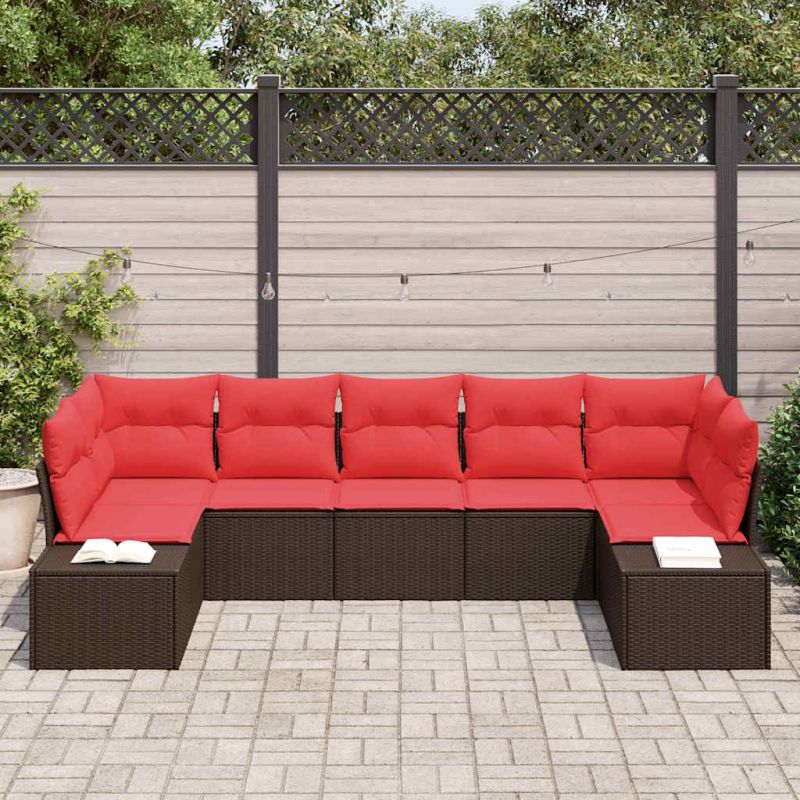 Градински Софа Комплект с възглавница 7 pcs Кафяво полиратан