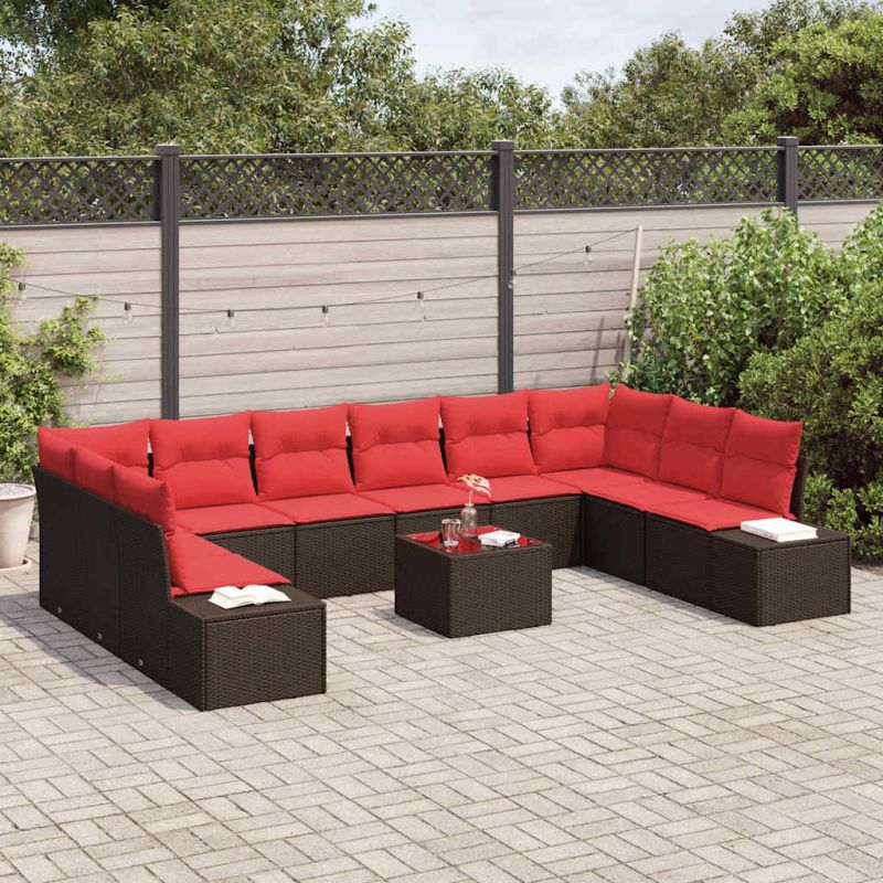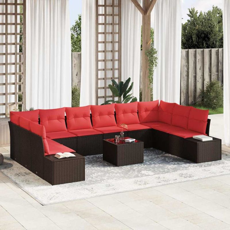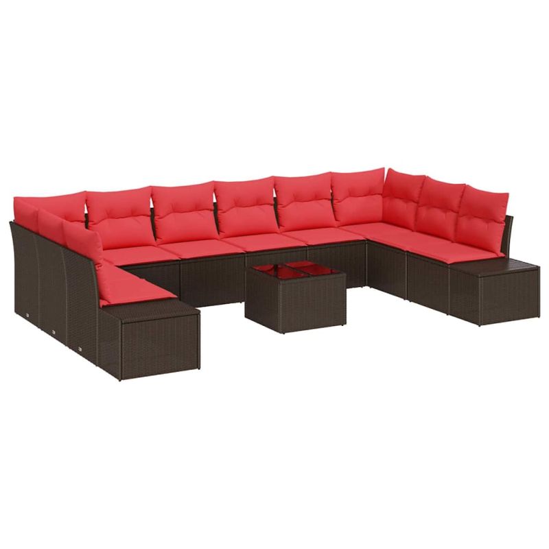 Градински Софа Комплект с възглавница 11 pcs Кафяво полиратан