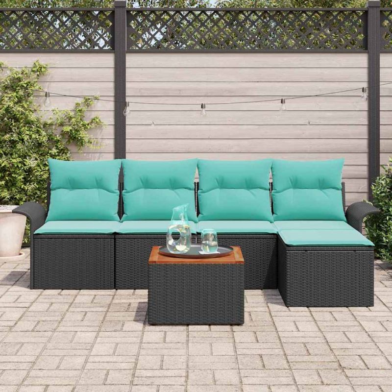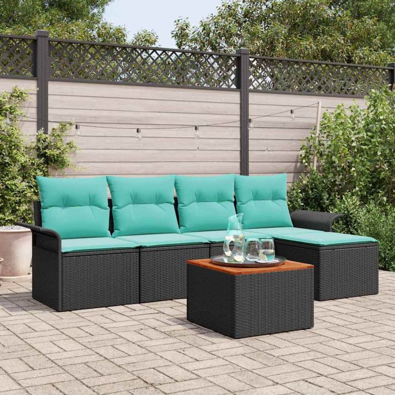 Градински Софа Комплект с възглавница 6 pcs Черно полиратан