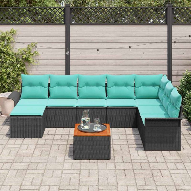 Градински Софа Комплект с възглавница 9 pcs Черно полиратан