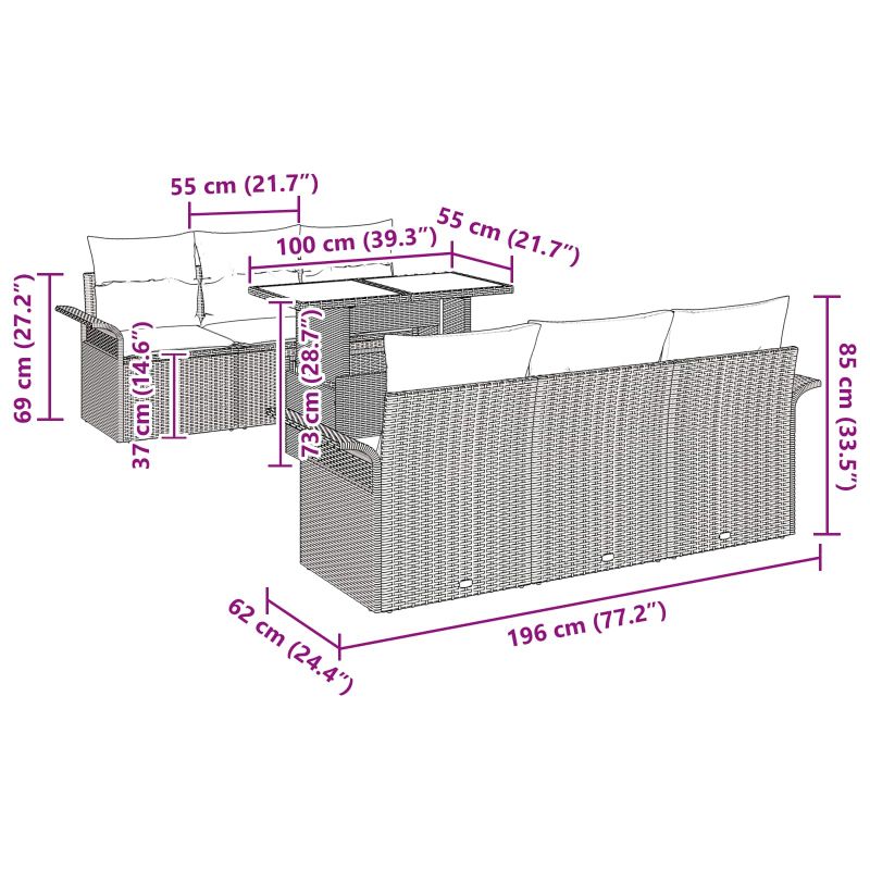 Градински Софа Комплект с възглавница 7 pcs Черно Полиратан
