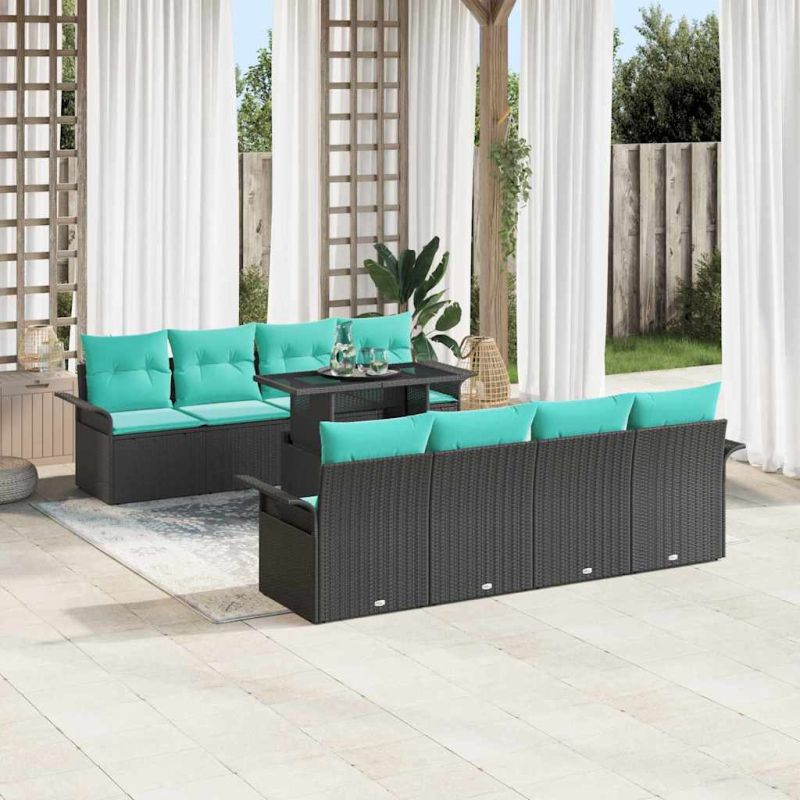 Градински Софа Комплект с възглавница 9 pcs Черно Полиратан