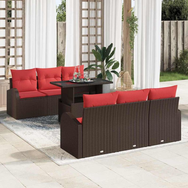 Градински Софа Комплект с възглавница 7 pcs Кафяво Полиратан