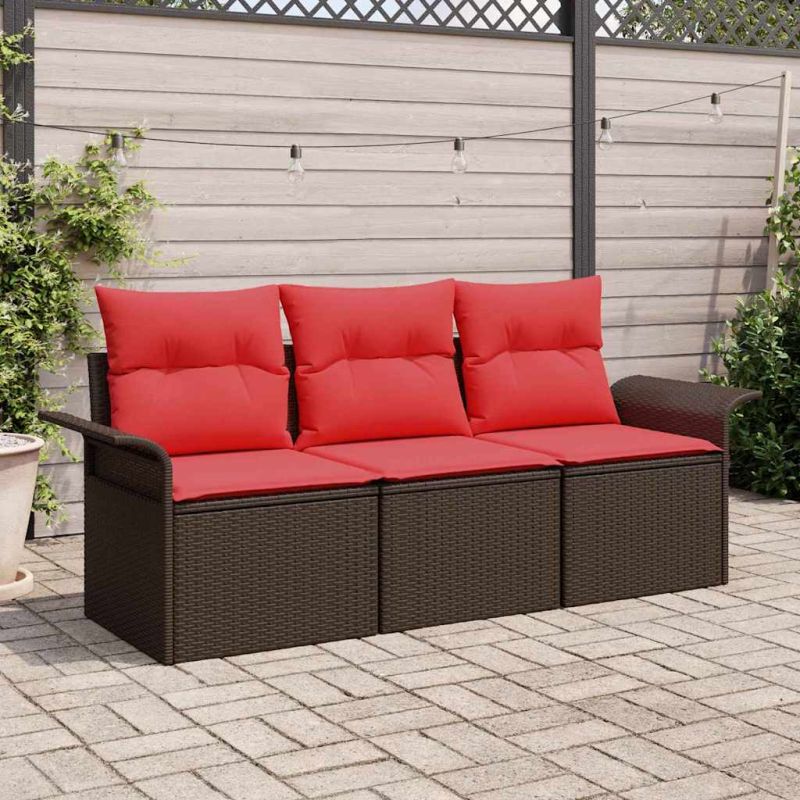 Градински Софа Комплект с възглавница 3 pcs Кафяво Полиратан