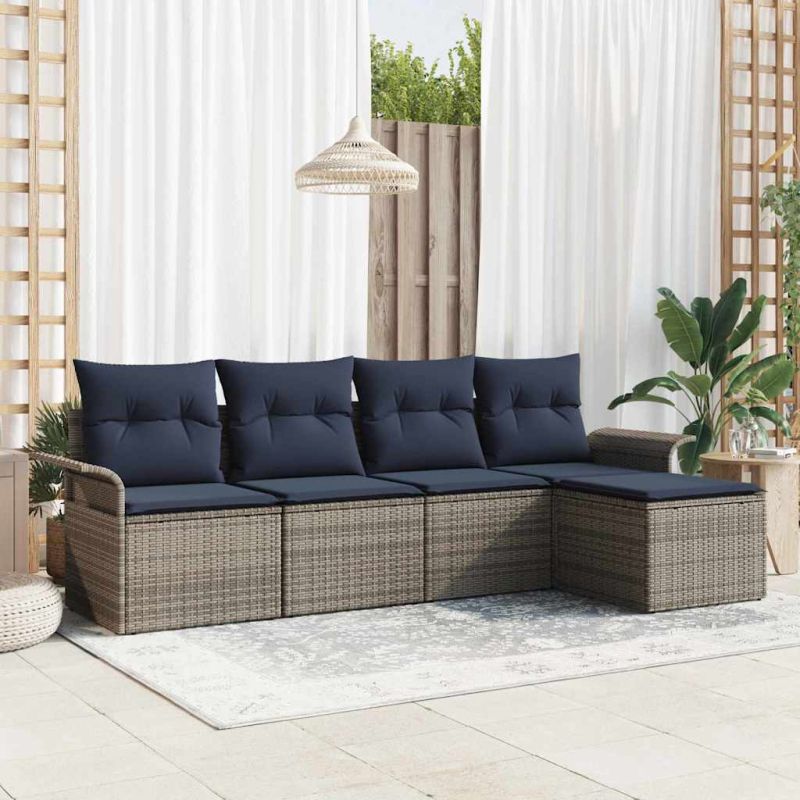 Градински Софа Комплект със съхранение 5 pcs Сив полиратан
