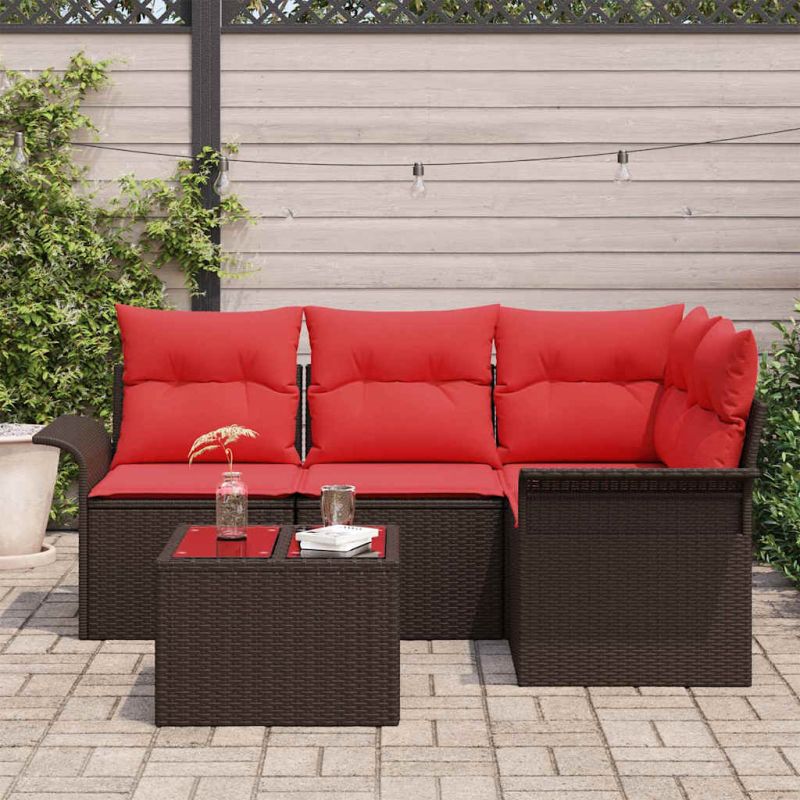Градински Софа Комплект със съхранение 5 pcs Кафяво полиратан