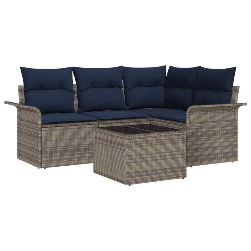 Градински Софа Комплект със съхранение 5 pcs Сив полиратан