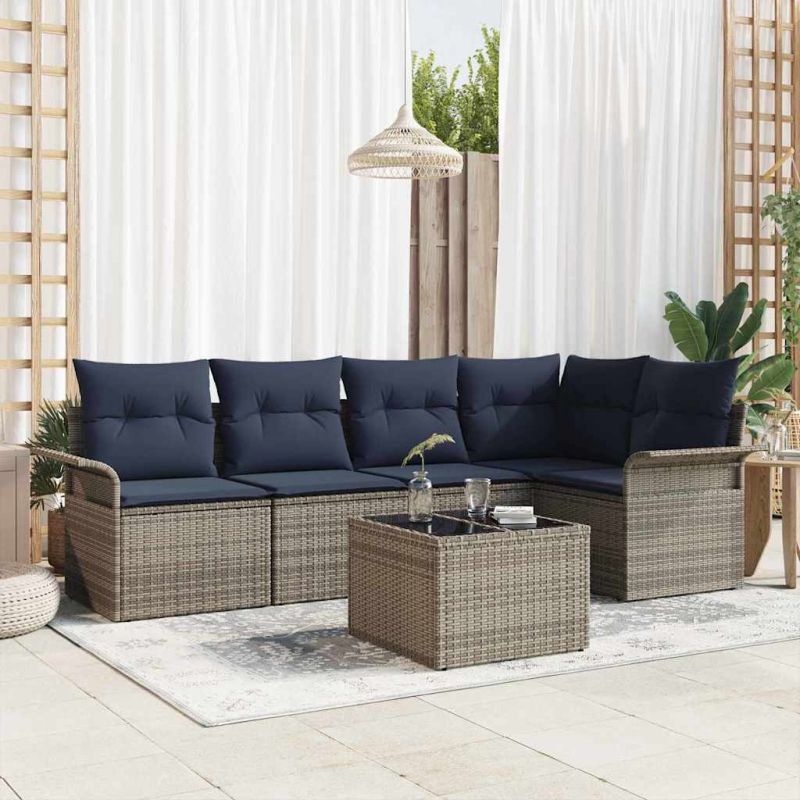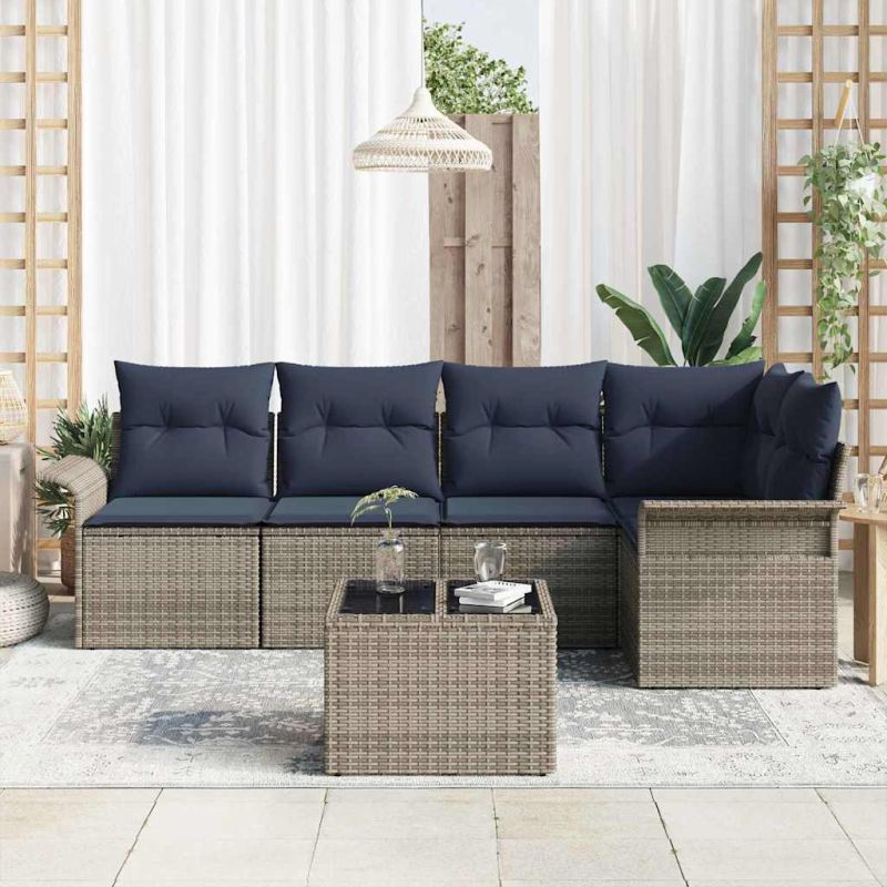 Градински Софа Комплект със съхранение 6 pcs Сив полиратан