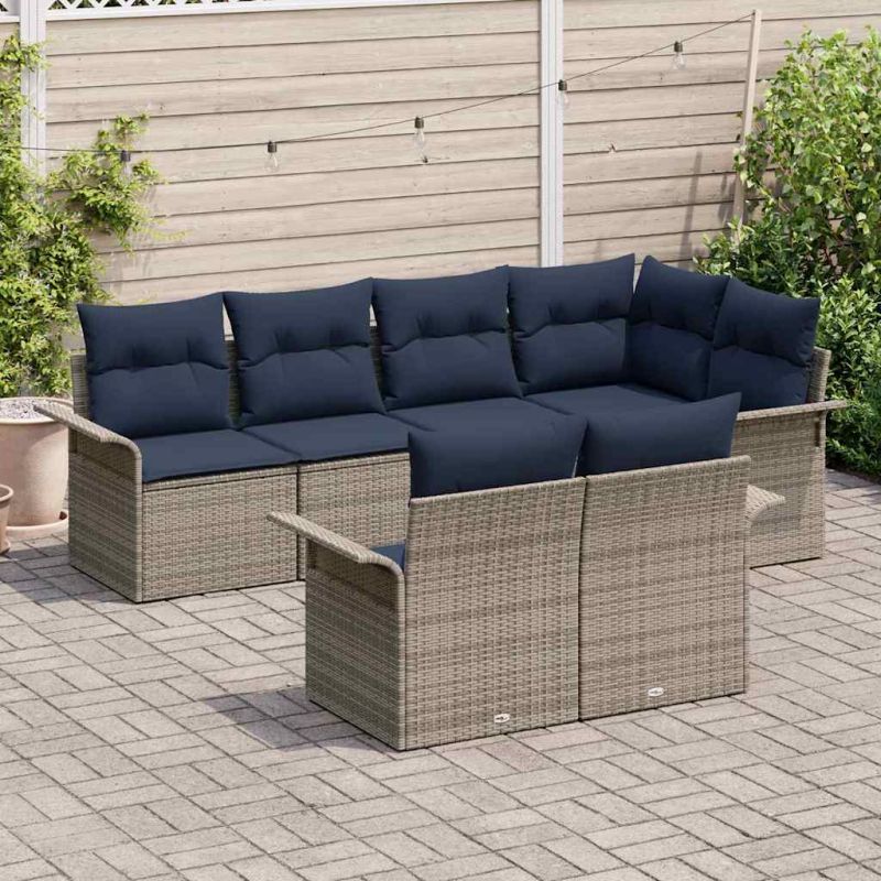 Градински Софа Комплект с възглавница 7 pcs Сив Полиратан