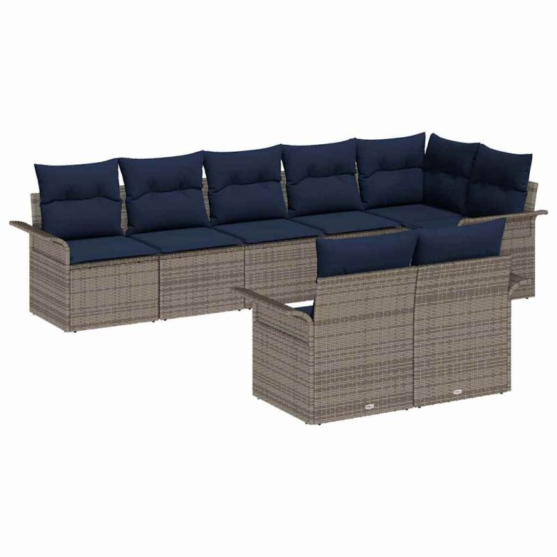 Градински Софа Комплект със съхранение 8 pcs Сив полиратан