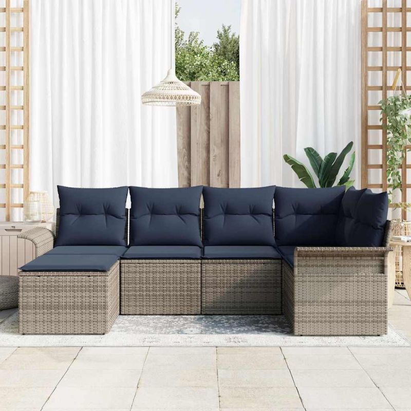 Градински Софа Комплект със съхранение 6 pcs Сив полиратан