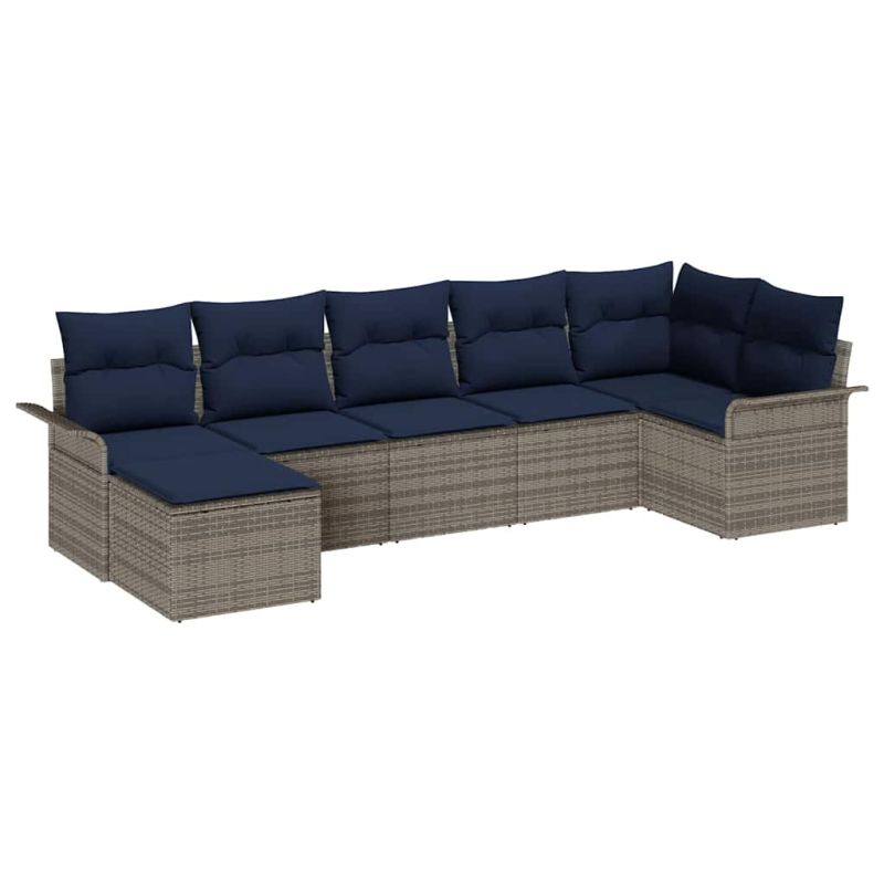 Градински Софа Комплект 7 pcs Светлосиво полиратан