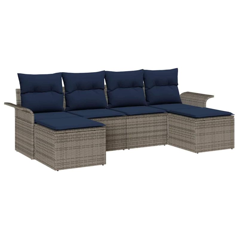 Градински Софа Комплект с възглавница 6 pcs Сив Полиратан