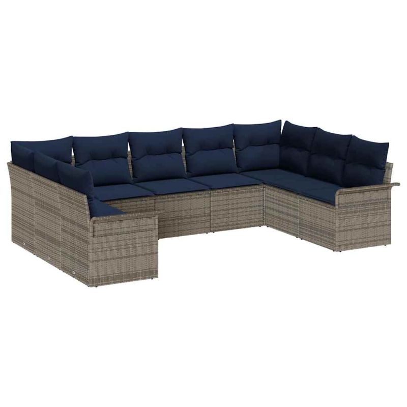 Градински Софа Комплект 9 pcs Светлосиво полиратан