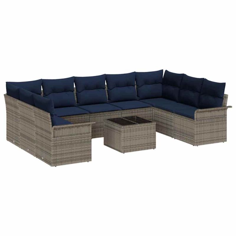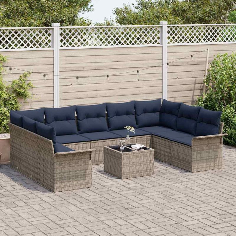 Градински Софа Комплект със съхранение 10 pcs Сив полиратан