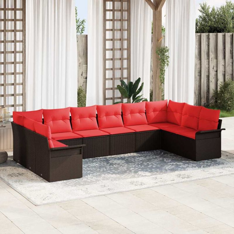 Градински Софа Комплект със съхранение 10 pcs Бежово полиратан