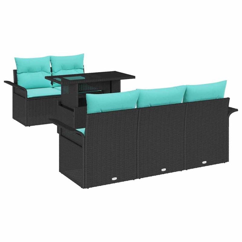 Градински Софа Комплект 6 pcs Черно Полипропилен Ратан