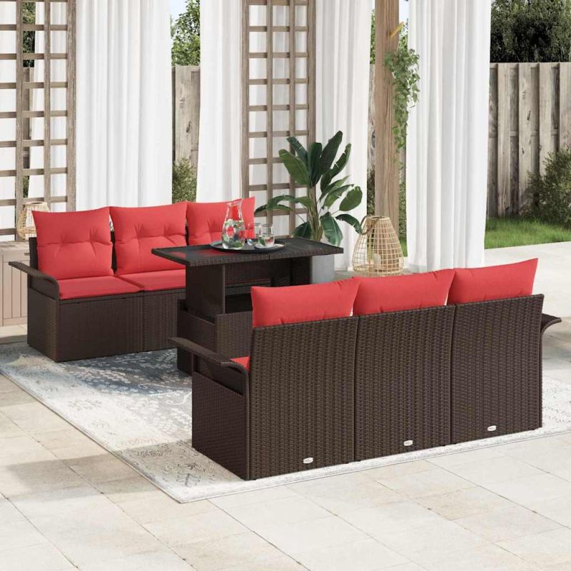Градински Софа Комплект 7 pcs Кафяво Полипропилен Ратан