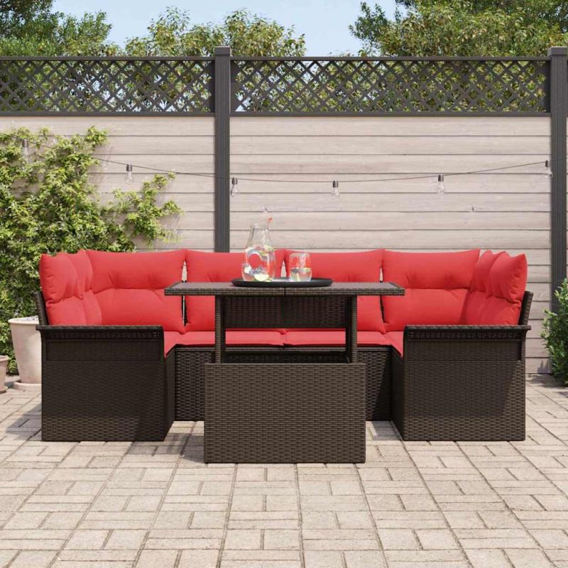 Градински Софа Комплект 7 pcs Кафяво Полипропилен Ратан