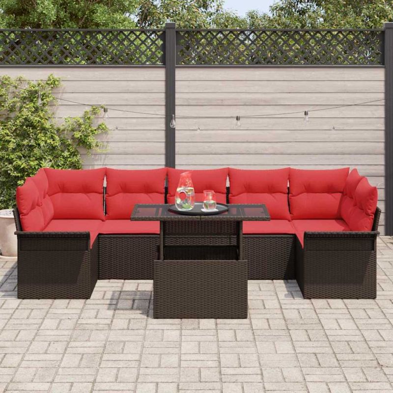 Градински Софа Комплект 8 pcs Кафяво Полипропилен Ратан