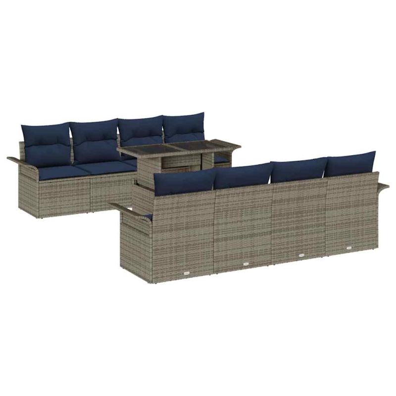 Градински Софа Комплект 9 pcs Сив Полипропилен Ратан