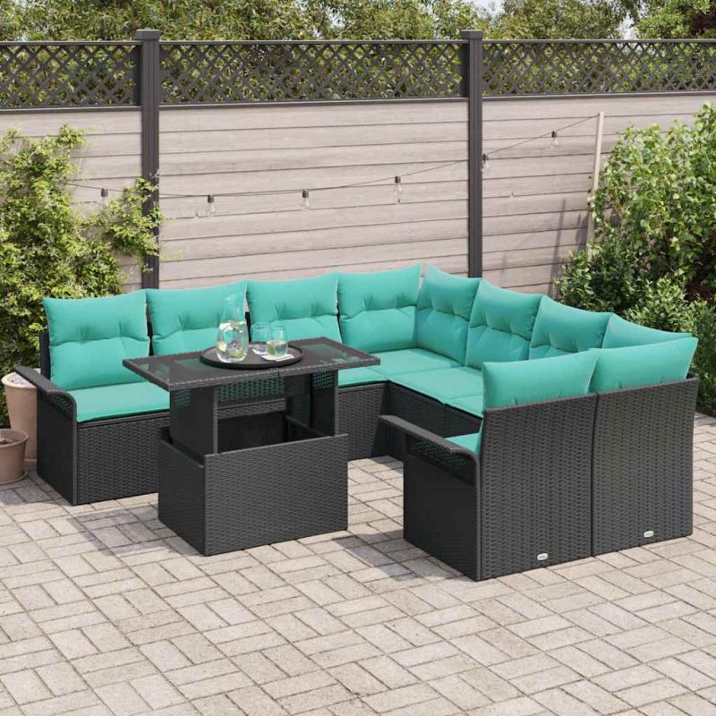 Градински Софа Комплект 9 pcs Черно Полипропилен Ратан