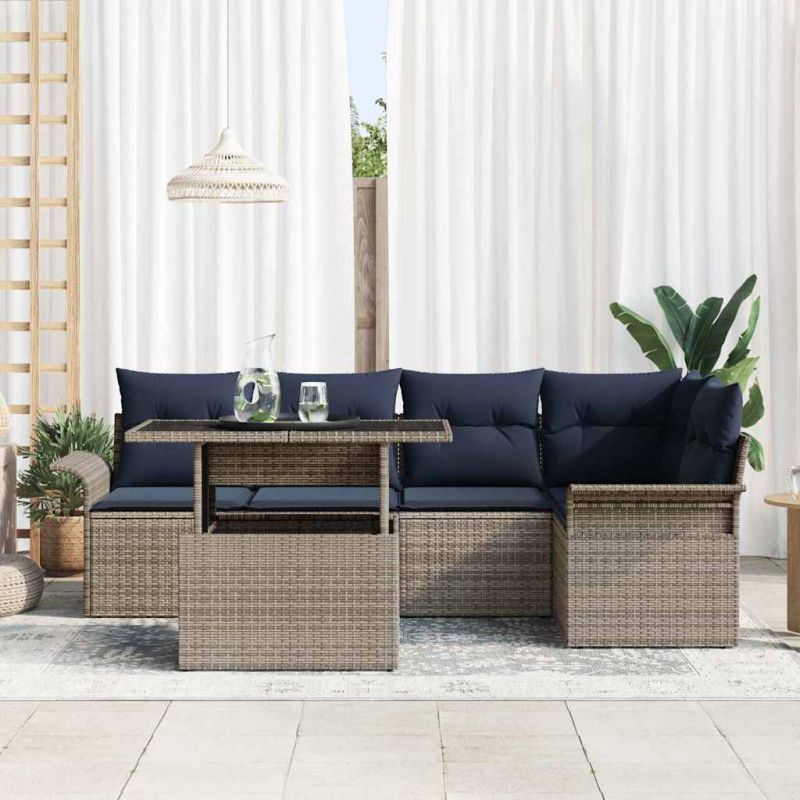 Градински Софа Комплект 6 pcs Сив Полипропилен Ратан