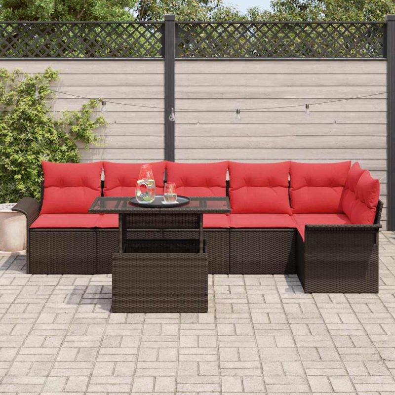 Градински Софа Комплект с възглавница 7 pcs Кафяво Полиратан