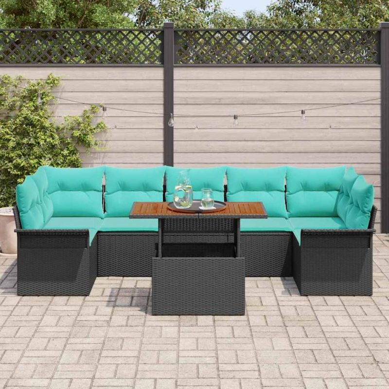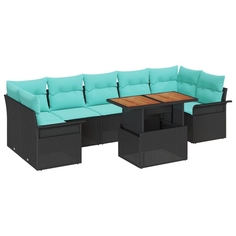 Градински Софа Комплект със съхранение 8 pcs Черно Полиратан