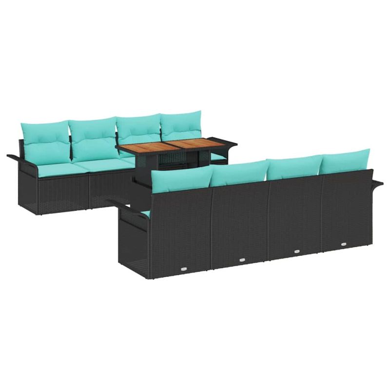 Градински Софа Комплект със съхранение 9 pcs Черно Полиратан