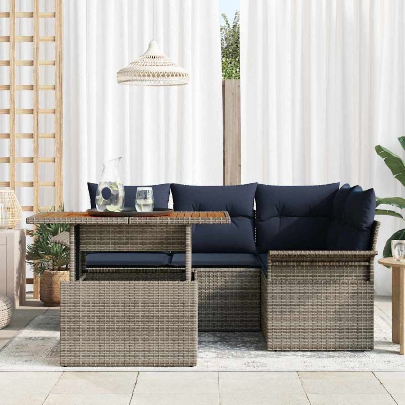 Градински Софа Комплект със съхранение 5 pcs Сив Полиратан