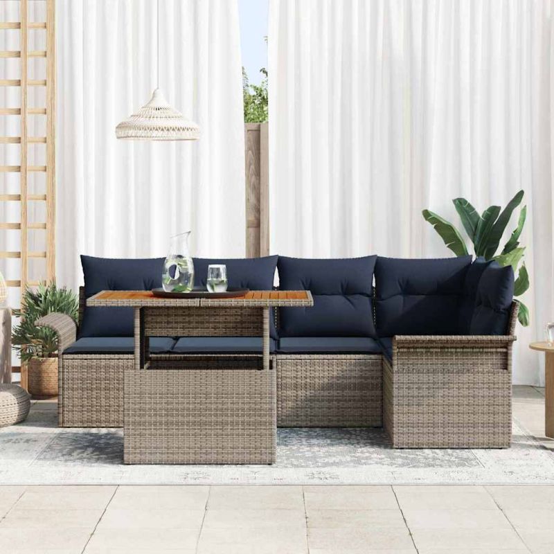 Градински Софа Комплект със съхранение 6 pcs Сив Полиратан