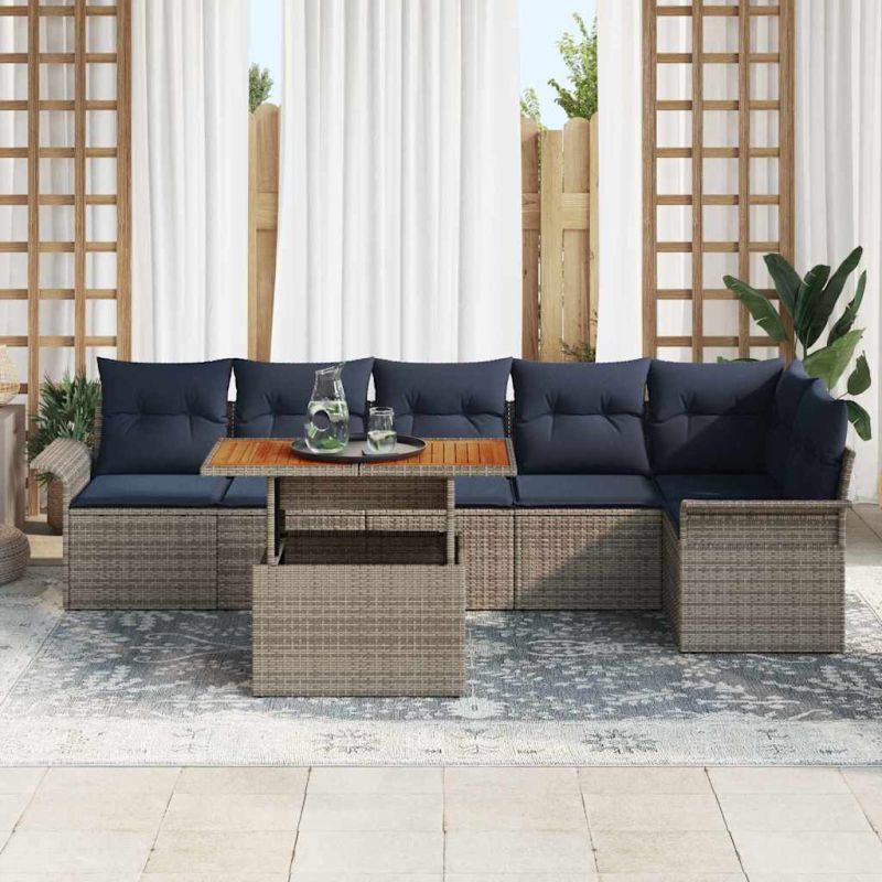 Градински Софа Комплект със съхранение 7 pcs Сив Полиратан