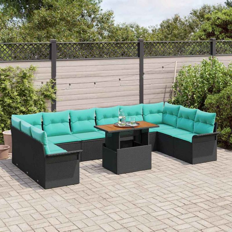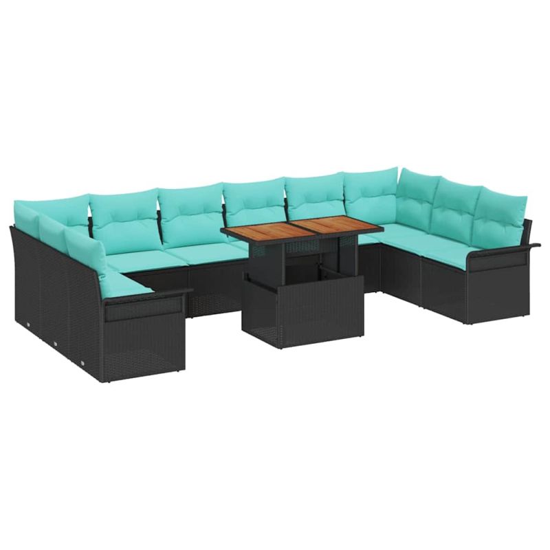 Градински Софа Комплект със съхранение 11 pcs Черно Полиратан